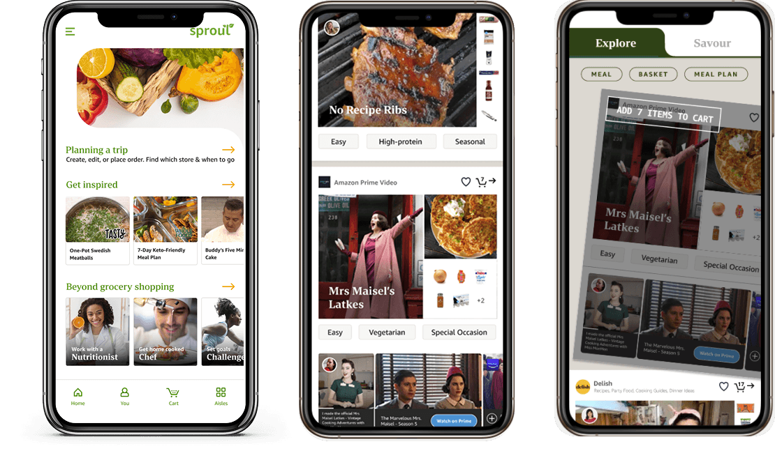 Outcome: This concept evolved into what is now the Amazon Fresh/Sidechef interactive, shoppable recipe integration.